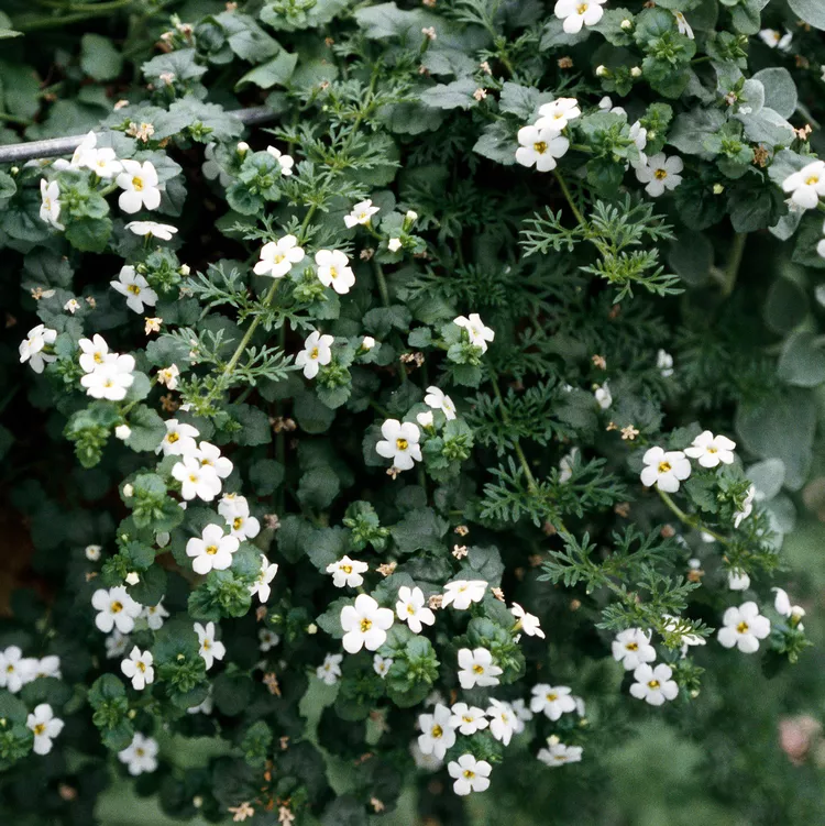 Most commonly seen in its white-flowered form, bacopa can bloom almost nonstop through the entire growing season. Though small, the white flowers cover the plant and act as a beautiful backdrop. The tiny green leaves are roughly heart-shaped and have a slightly serrated edge. The white blooms and green foliage mix easily in almost any plant combination.